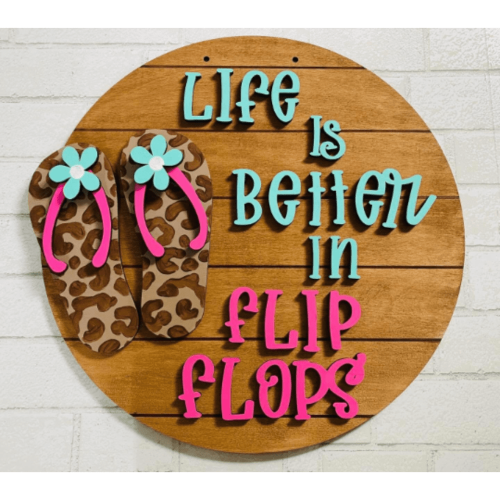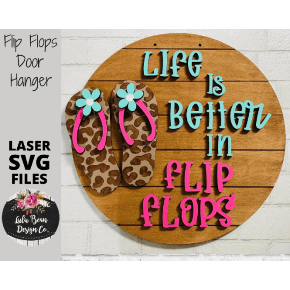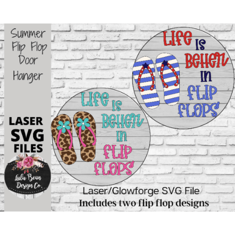 Flip Flop Summer Door Hanger SVG File Digital Laser Wood Glowforge template, includes both leopard and patriotic flip flops