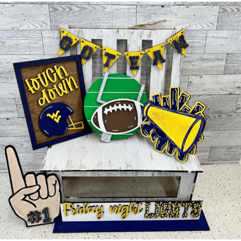 Friday Night Lights Football Leopard Shelf Sitter Set SVG Wood Glowforge Digital Cut File Laser Wood Cutting Interchangeable. Leopard pattern is scored in the file, so you can omit it if you choose not to use it.