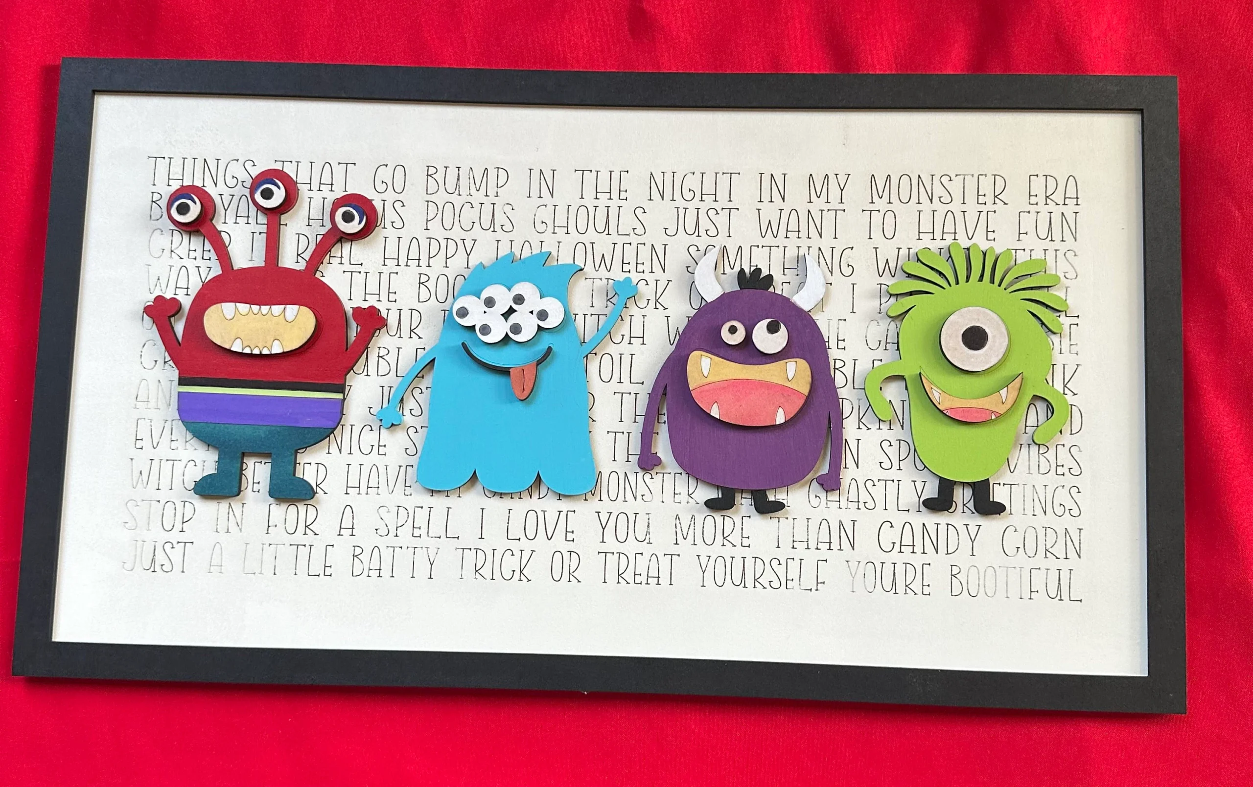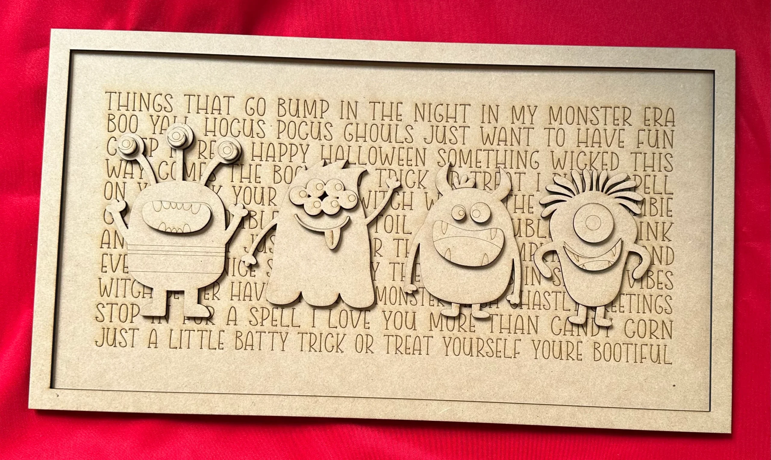 Halloween Monster Engraved Word Sign Digital Cut File Laser Wood SVG cutting template Glowforge