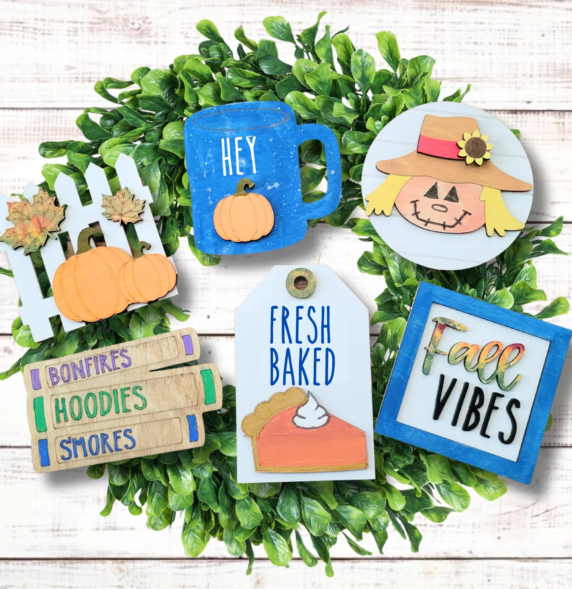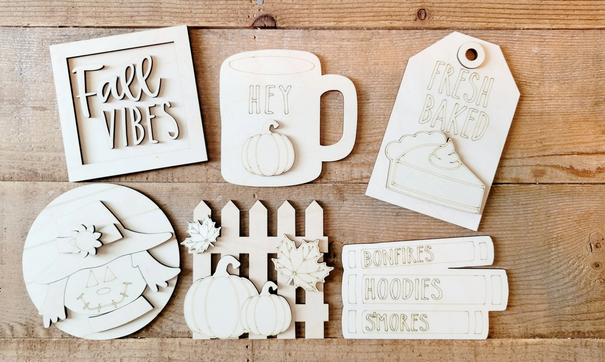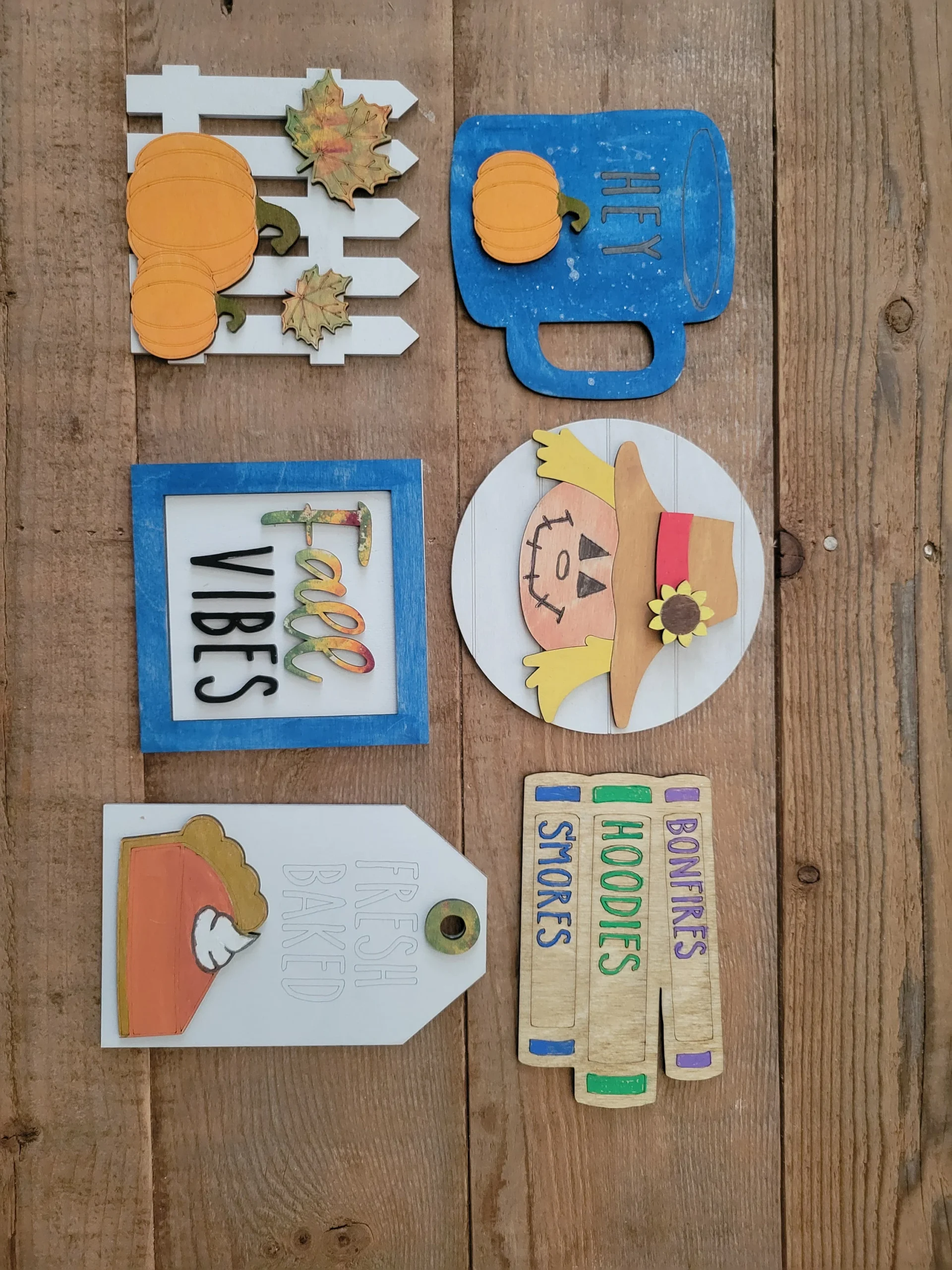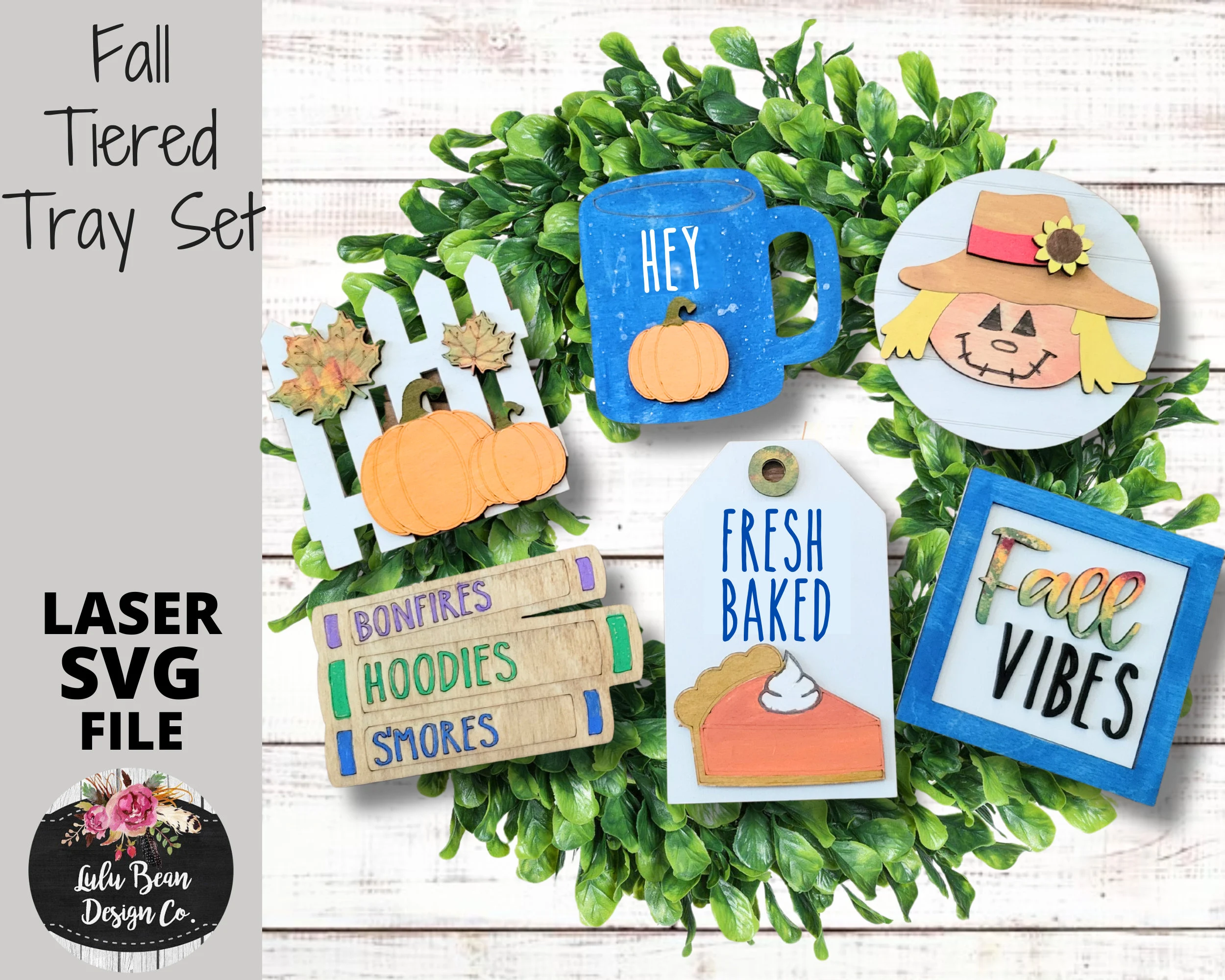 Hey Pumpkin Fall Scarecrow Cofee Pie Fall Vibes Tiered Tray SVG File Laser Glowforge Kit Sign Wood Tags Digital Cut Cutting