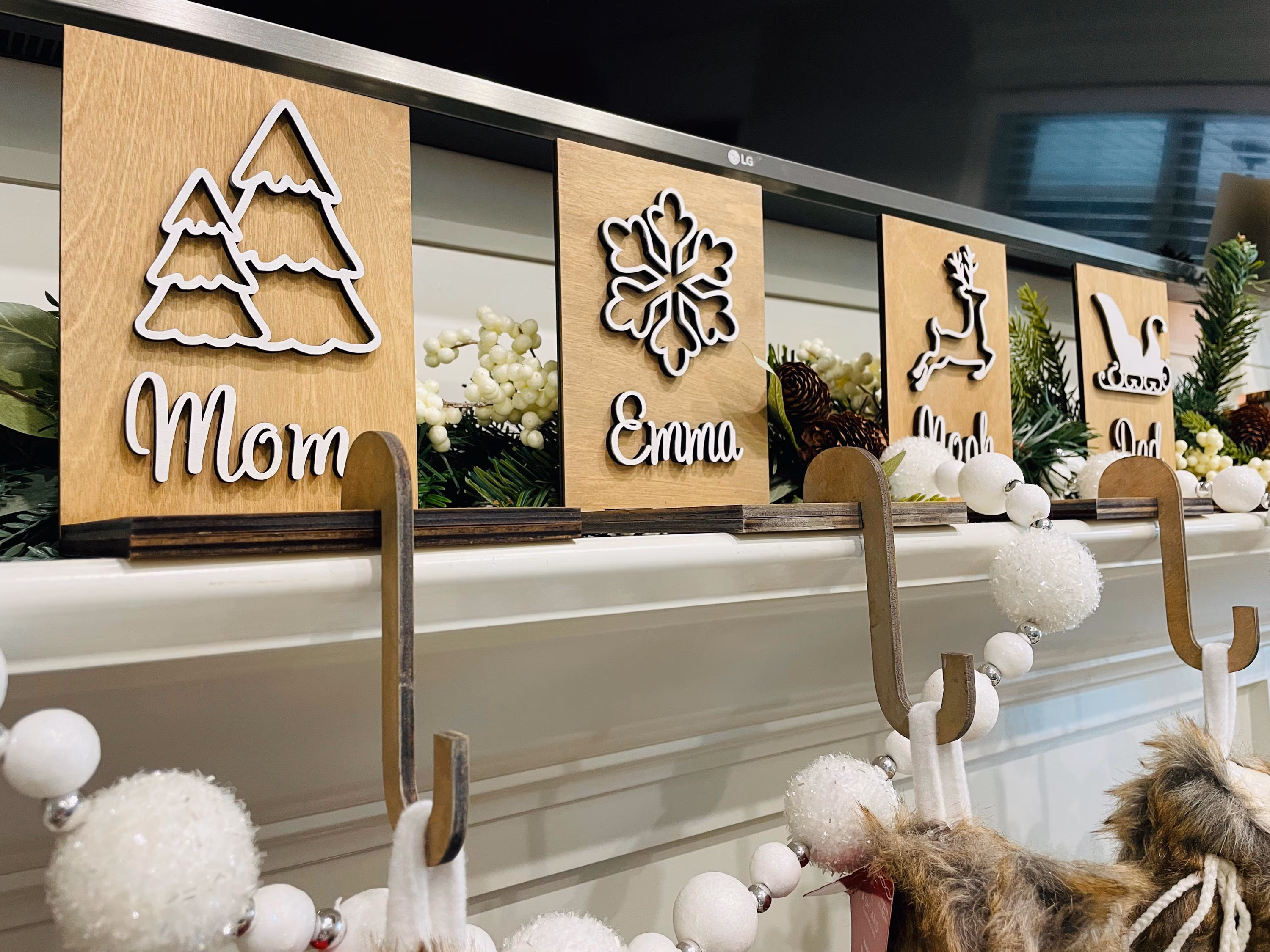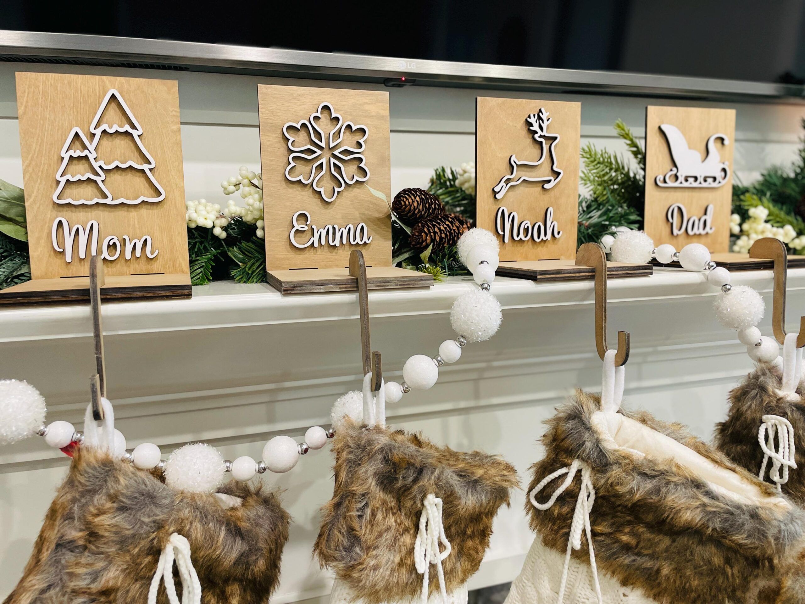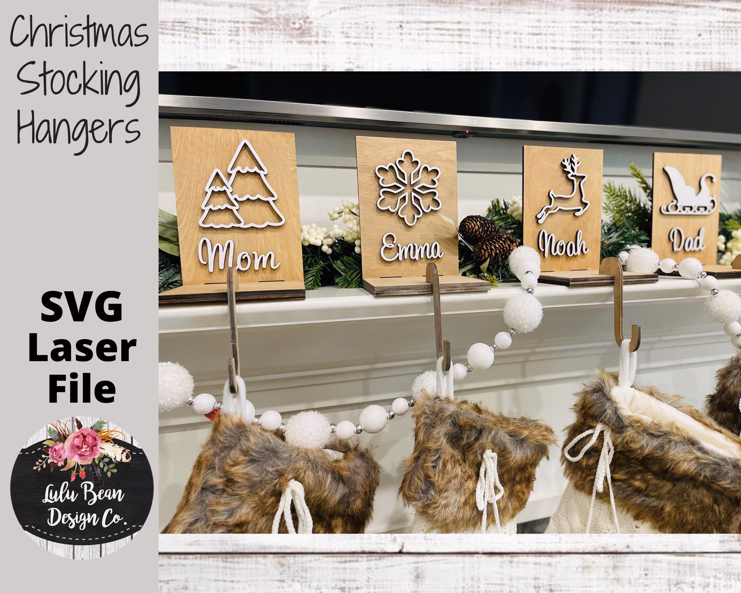 Personalized Stocking Hangers Set of 8 Christmas SVG laser file Wood Personalized Digital Cutting Glowforge