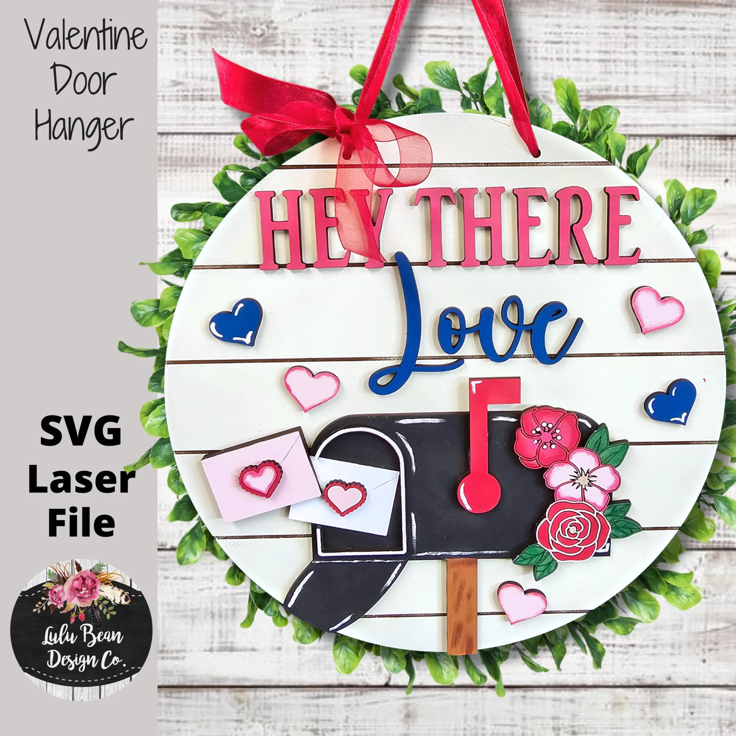Valentine’s Day Hey there Love Mailbox Door Hanger SVG Laser Glowforge Digital Cut File Wood Cutting template round